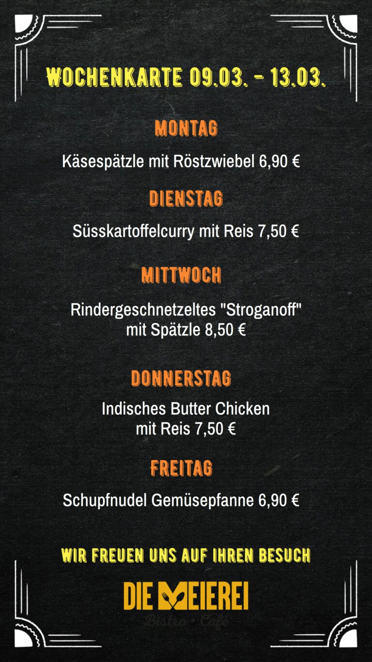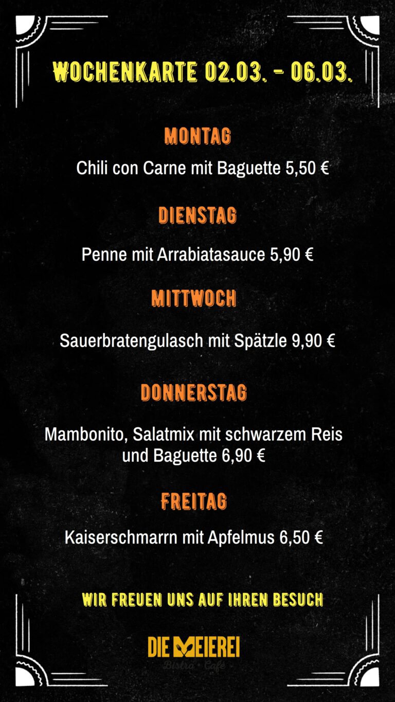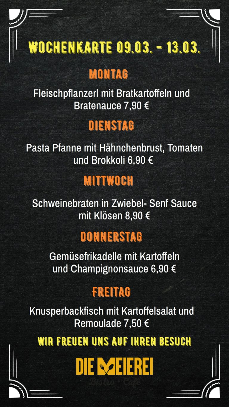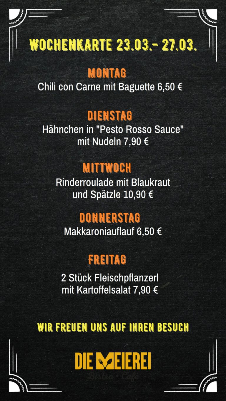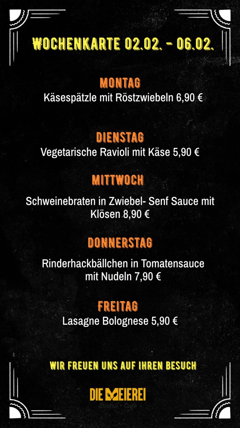 Neben unserer festen Speisekarte bieten wir Ihnen jede Woche neue, frisch zubereitete Gerichte (täglich bis 14:00 Uhr) an.